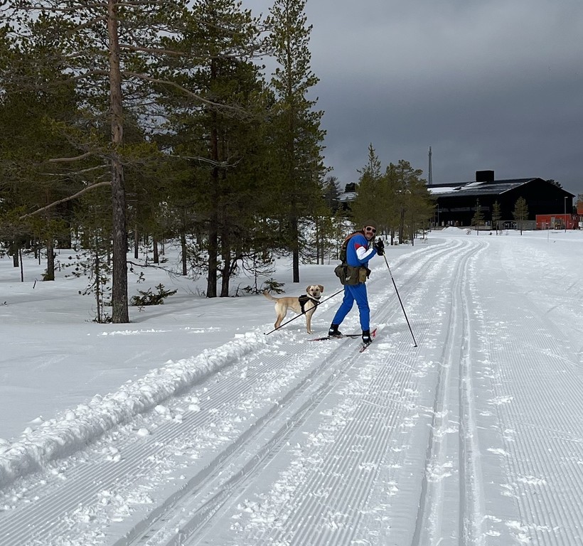 Kongo med assistanshund på fina skidspår i Lindvallen